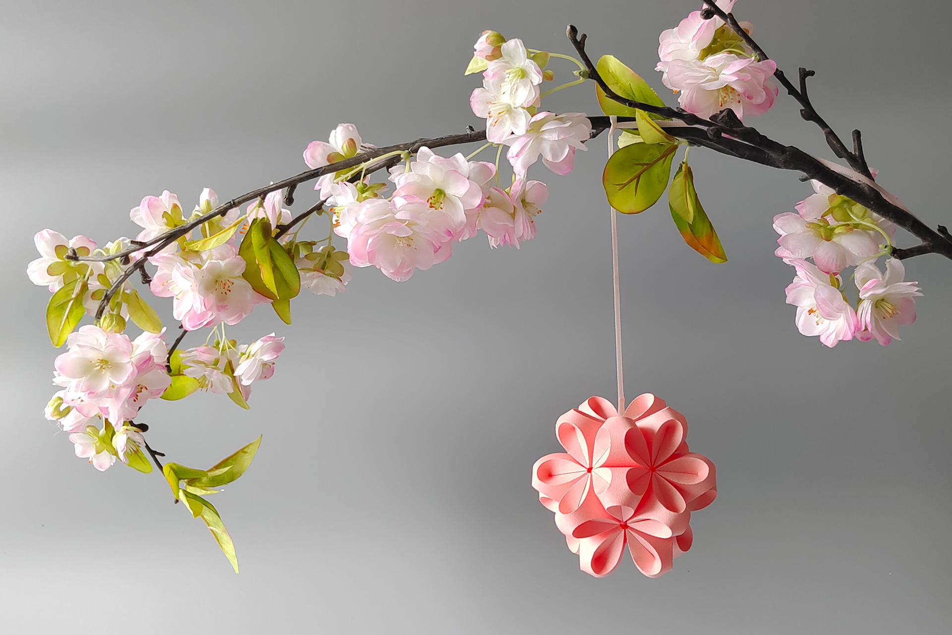 The individual flower paper objects by the designer Kristina Wißling are elaborately handcrafted from japanese origami paper, with each module being handfolded and assembled in the form of a flower. The blossoms decorate every table wonderfully, can be decorated with the hanger in an arrangement of twigs and branches, and they can also be perfectly combined in color with the corresponding flowers on a stick.